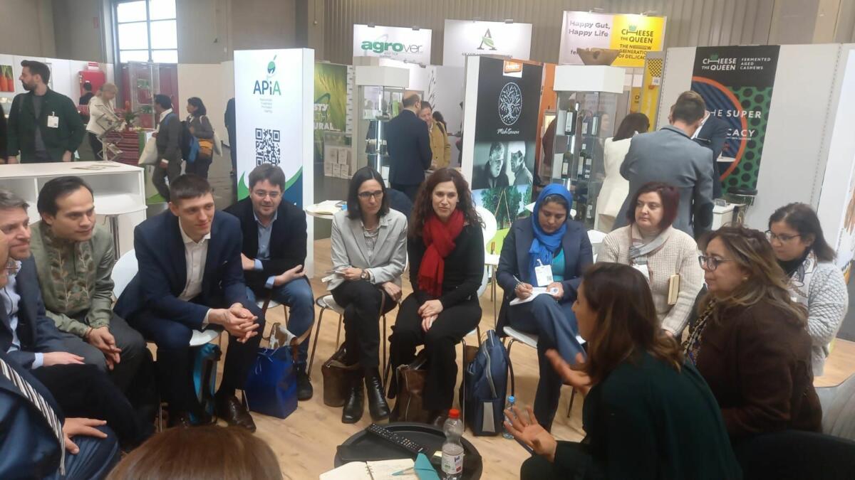 At Biofach23, several representatives of Swiss organisations visited the Tunisian pavilion, and the visit took much more time than expected: M. Silvan Hungerbühler, Programme Manager at SECO, Mr. Martin Peter, Deputy Manager of the Trade Promotion Department at SECO, Mr. Alejandro Espinoza, Representative of IFOAM-Organics International- and Head of OT4D programme, Ms. Andrea Bischof, Representative of Helvetas and Export Manager of the OT4D programme, Mr. Tobias Eisenring, Representative of FiBl and OT4D Programme Manager. SIPPO and the Tunisian delegation were honored by the presence of Samia Maamer, General Director of the Organic Department at the Ministry of Agriculture. From APIA, Jamal Farhad, Secretary general of APIA and Mouna Chalghoum, Chief of section-trade fairs department-APIA were participating at the meeting as well.